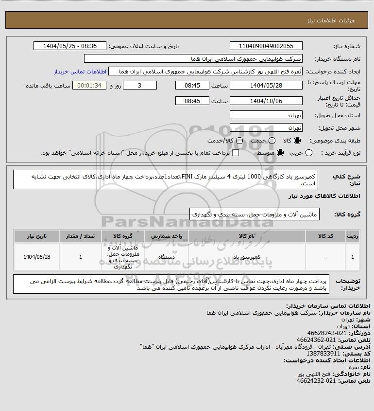 نام دستگاه خریدار:شرکت هواپیمایی جمهوری اسلامی ایران هما