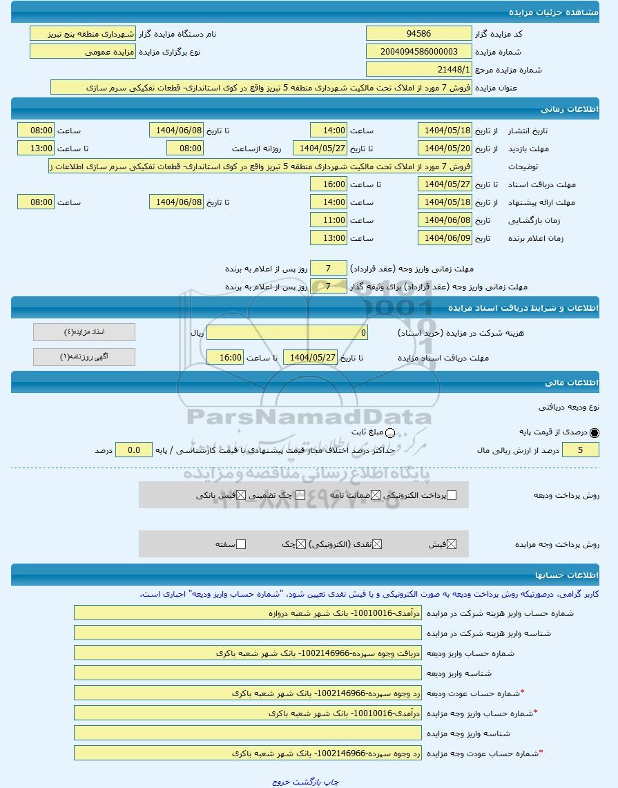 | شماره مال | 2104094586000024 | نوع برگزاری مزایده | مزایده عمومی | |