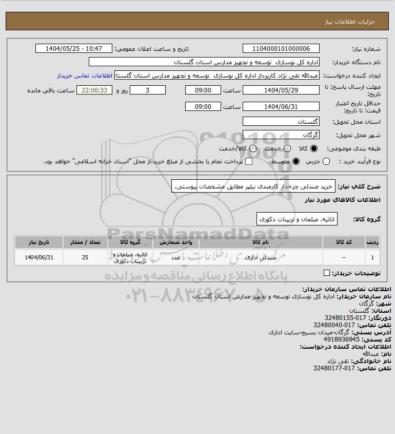 1 -- صندلی اداری عدد اثاثیه، مبلمان و تزیینات دکوری 25 1404/06/31