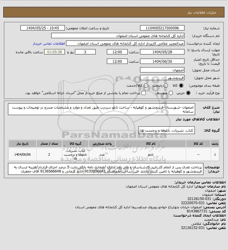 استعلام اصفهان -شهرستان فریدونشهر و کوهپایه - ساخت تابلو سردرب طبق تعداد و موارد و مشخصات مندرج در توضیحات و پیوست سامانه, استعلام اصفهان -شهرستان فریدونشهر و کوهپایه - ساخت تابلو سردرب طبق تعداد و موارد و مشخصات مندرج در توضیحات و پیوست سامانه