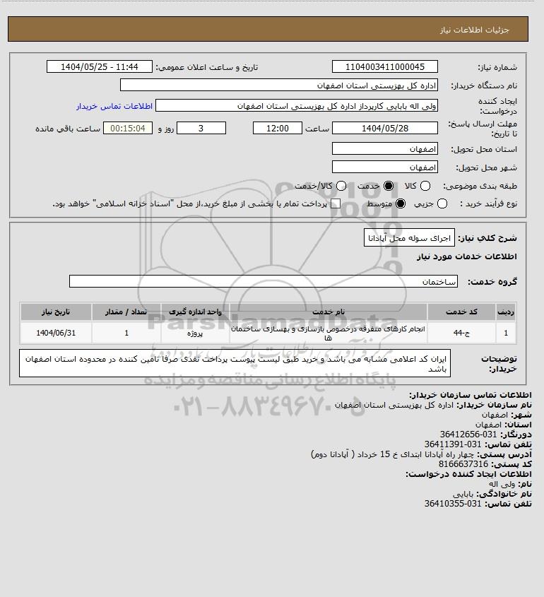جهت دریافت اطلاعات کامل این آگهی به سامانه ستاد ایران مراجعه فرمایید