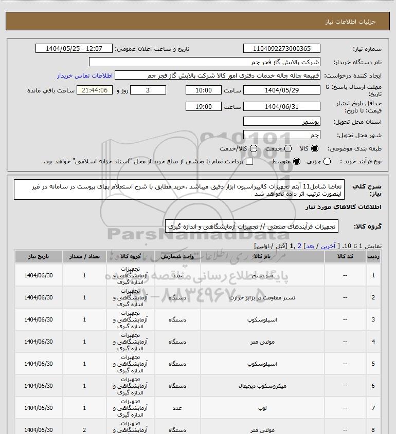| 7 | -- | لوپ | عدد | تجهیزات آزمایشگاهی و اندازه گیری | 1 | 1404/06/30 |