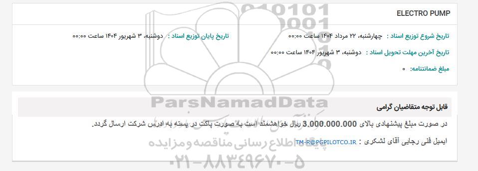 تاریخ پایان توزیع اسناد: دوشنبه، 3 شهریور 1404 ساعت 00:00