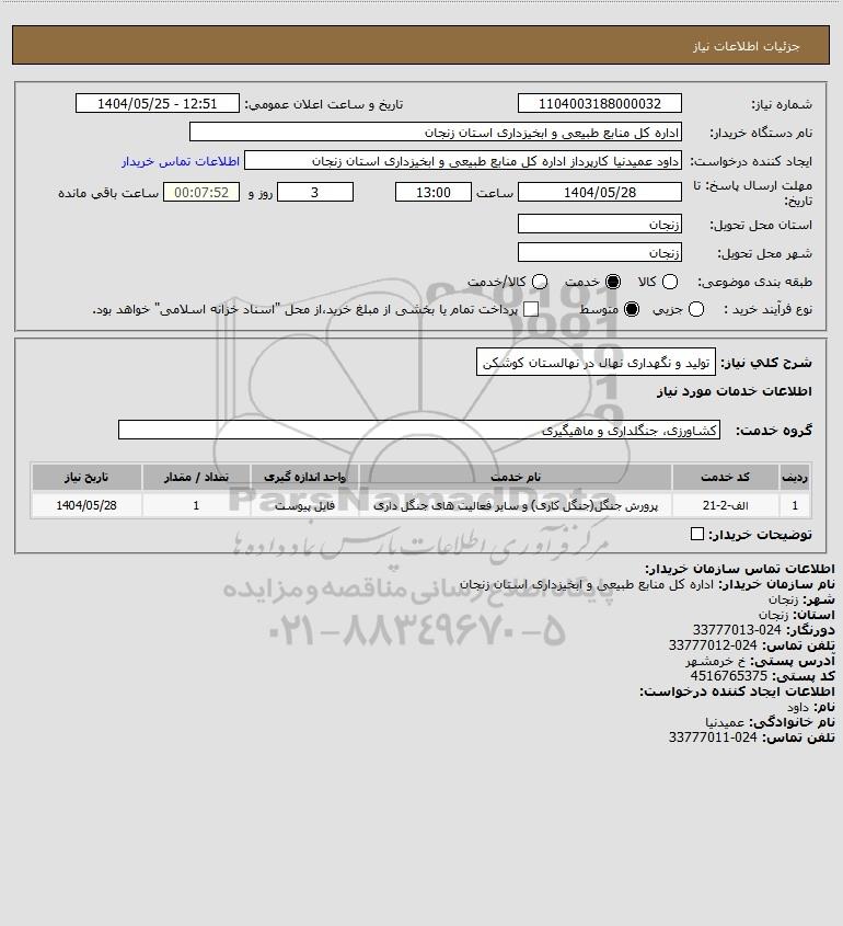 استعلام تولید و نگهداری نهال در نهالستان کوشکن, استعلام تولید و نگهداری نهال در نهالستان کوشکن