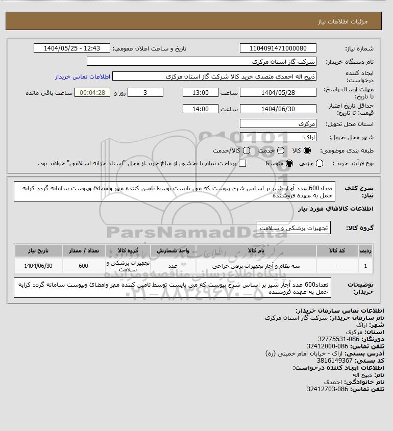 نام دستگاه خریدار:شرکت گاز استان مرکزی