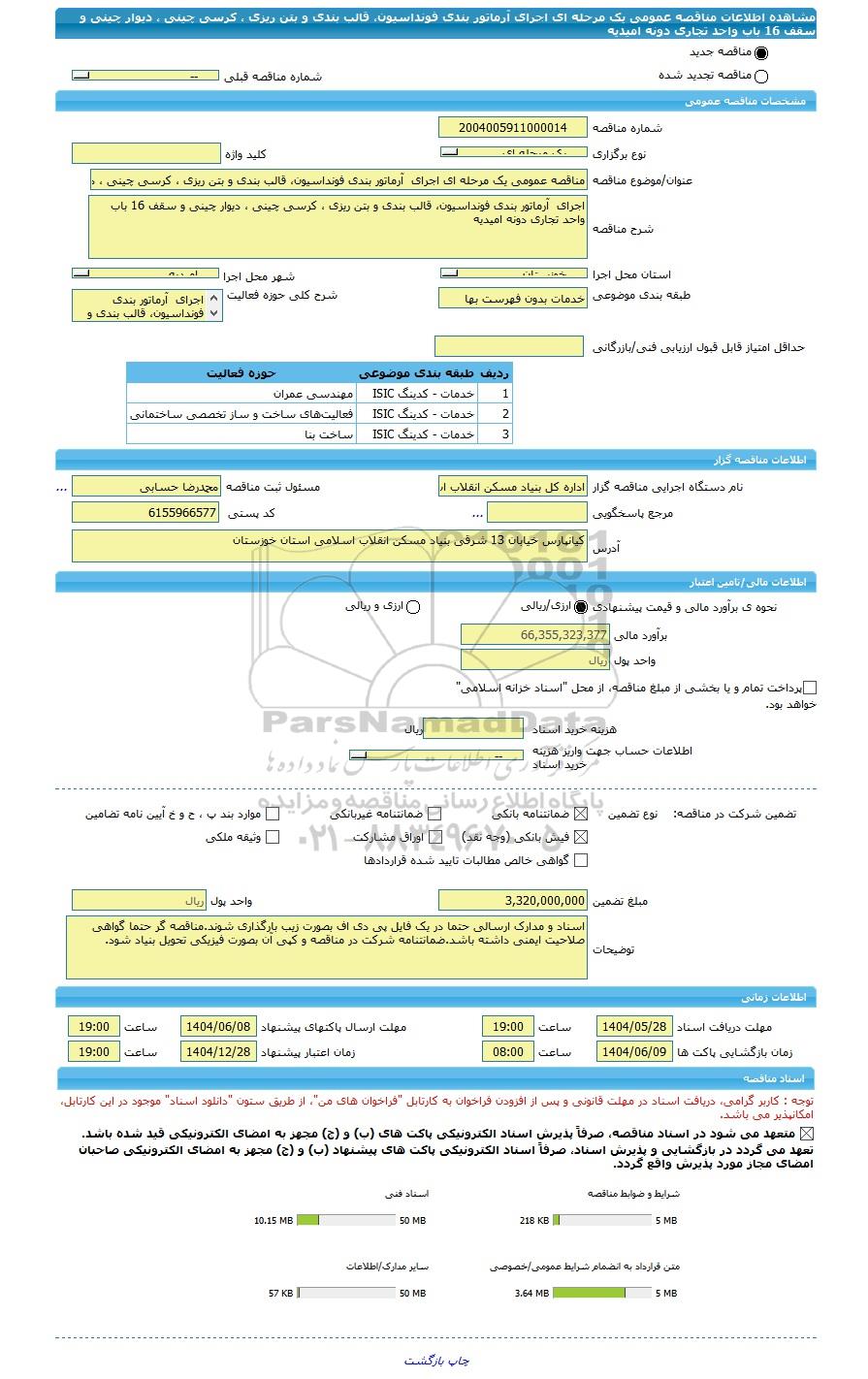 نام دستگاه اجرایی مناقصه گزاراداره کل بنیاد مسکن انقلاب اسلامی استان خوزستانمسئول ثبت مناقصهمحمدرضا حسابی