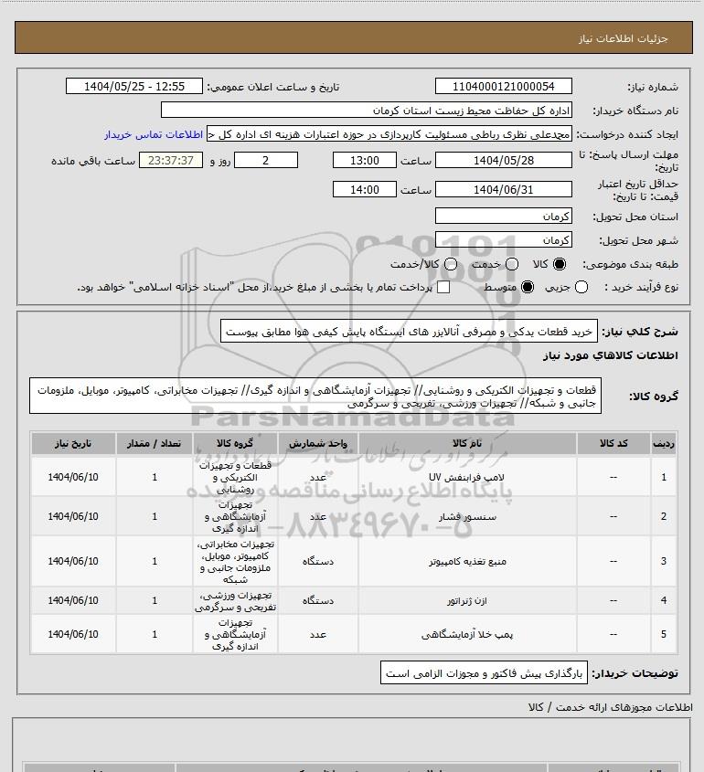 نام دستگاه خریدار:اداره کل حفاظت محیط زیست استان کرمان