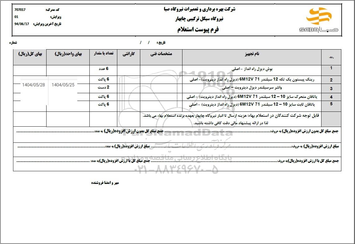 قابل توجه شرکت کنندگان در استعلام بهاء : هزینه ارسال تا انبار نیروگاه چابهار بعهده برنده استعلام می باشد. لذا در ارائه پیشنهاد مالی دقت داشته باشید.