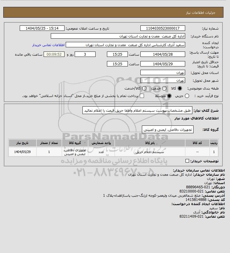 نام دستگاه خریدار:اداره کل صنعت معدن و تجارت استان تهران
