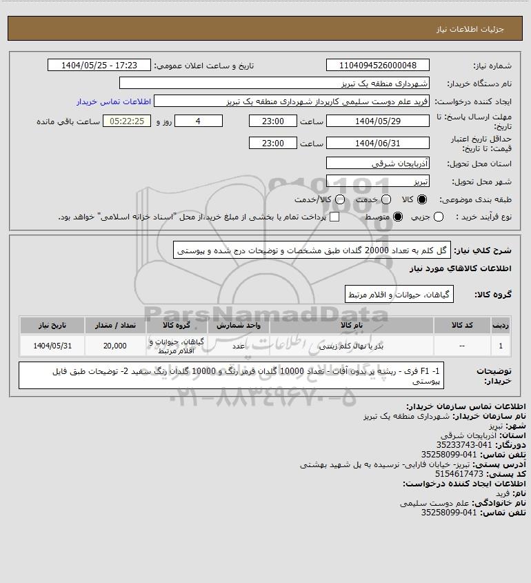 استعلام گل کلم به تعداد 20000 گلدان طبق مشخصات و توضیحات درج شده و پیوستی, استعلام گل کلم به تعداد 20000 گلدان طبق مشخصات و توضیحات درج شده و پیوستی