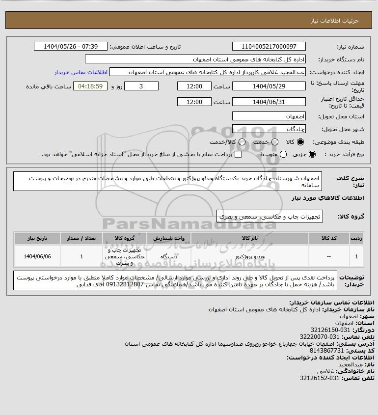 نام دستگاه خریدار:اداره کل کتابخانه های عمومی استان اصفهان