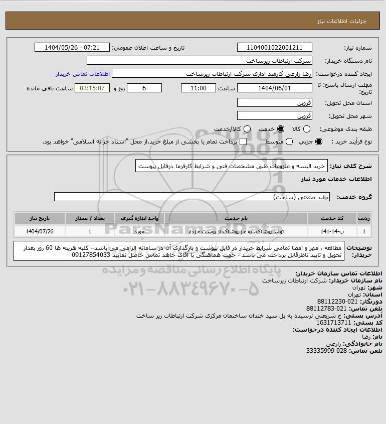 نام دستگاه خریدار:شرکت ارتباطات زیرساخت