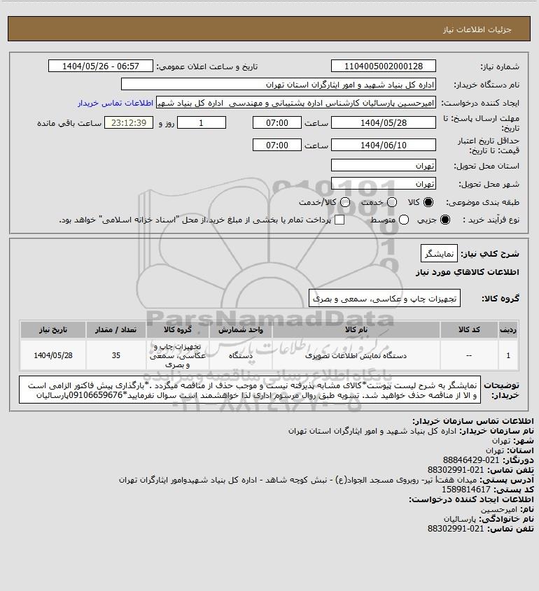 نام دستگاه خریدار:اداره کل بنیاد شهید و امور ایثارگران استان تهران