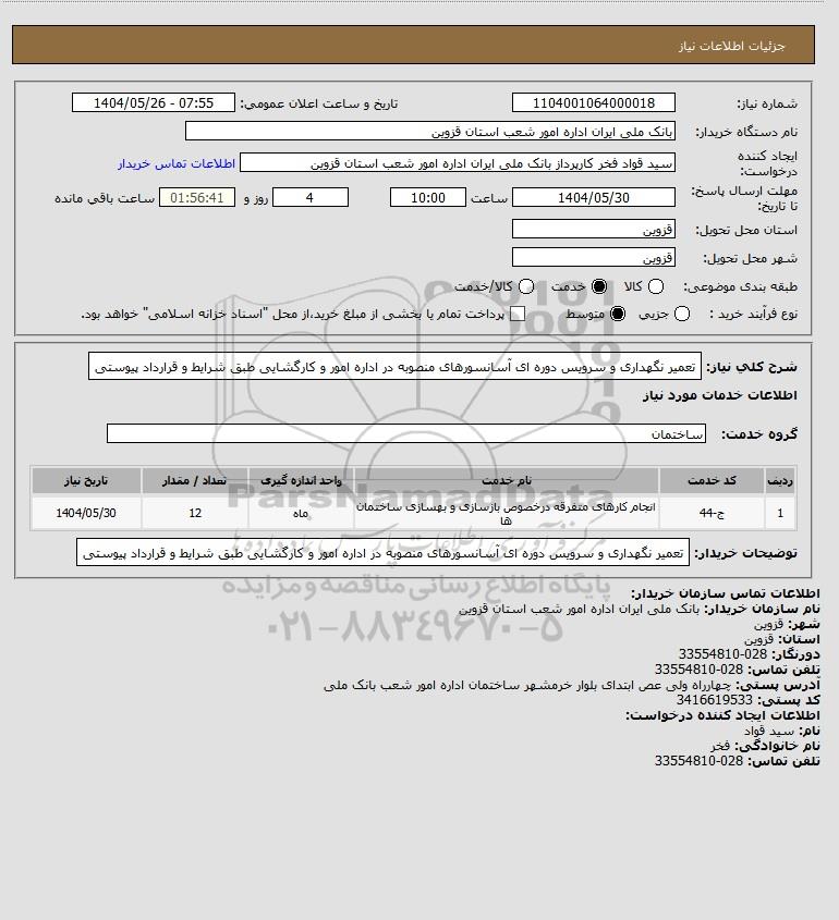 نام دستگاه خریدار:بانک ملی ایران اداره امور شعب استان قزوین