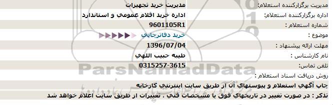 اداره برگزارکننده استعلام: اداره خرید اقلام عمومی و استاندارد