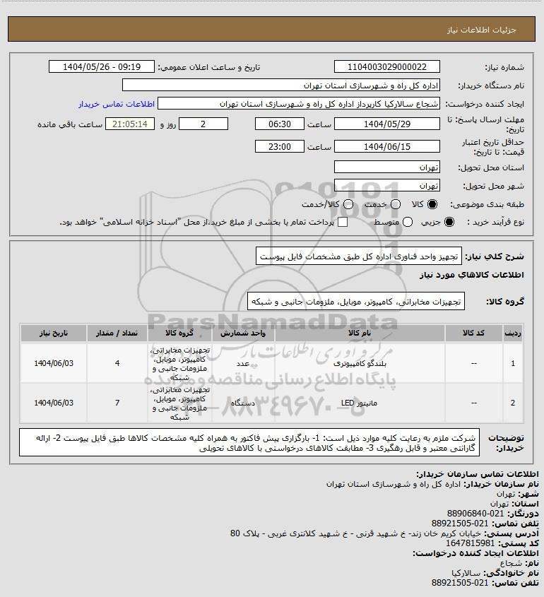 نام دستگاه خریدار:اداره کل راه و شهرسازی استان تهران