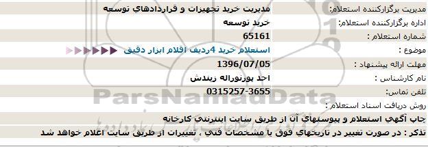 موضوع : استعلام خرید 4ردیف اقلام ابزار دقیق