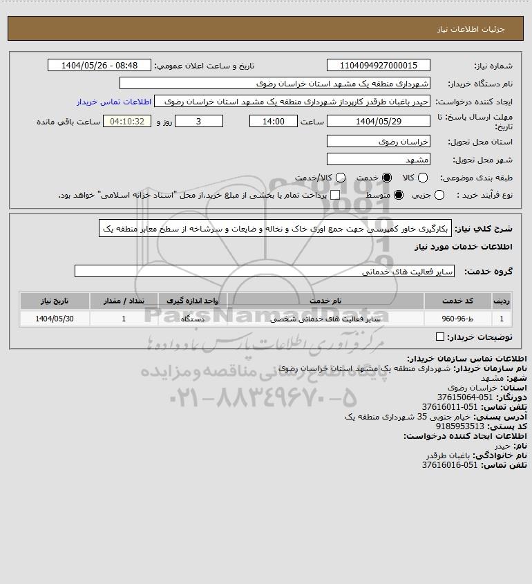 نام دستگاه خریدار:شهرداری منطقه یک مشهد استان خراسان رضوی