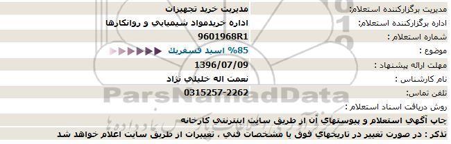 اداره برگزارکننده استعلام: اداره خریدمواد شیمیایی و روانکارها