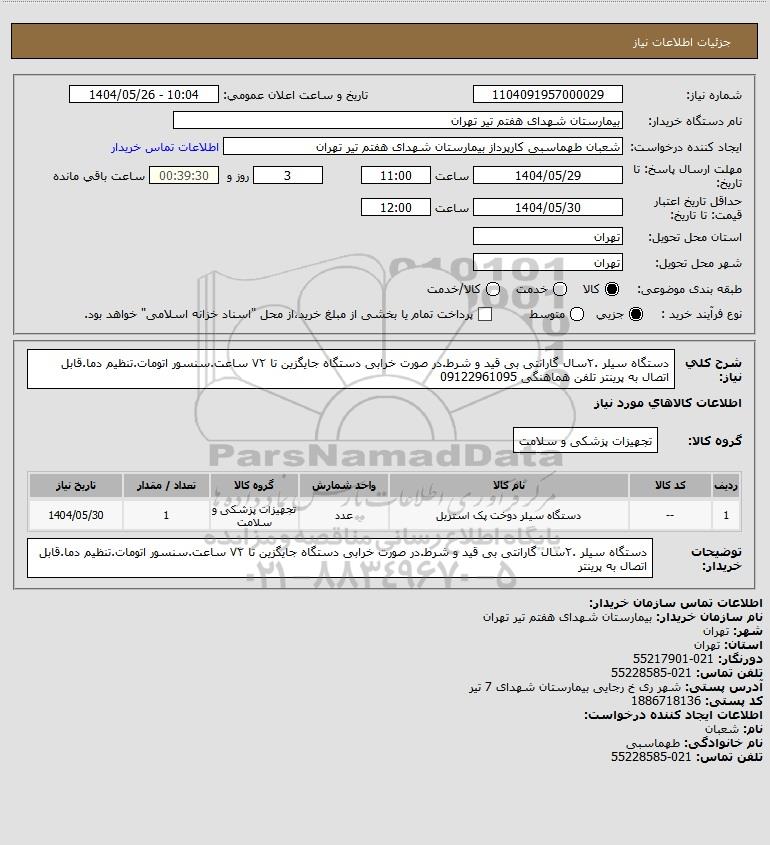 نام دستگاه خریدار:بیمارستان شهدای هفتم تیر تهران
