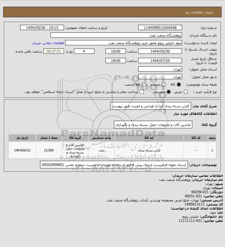 نام دستگاه خریدار:پژوهشگاه صنعت نفت