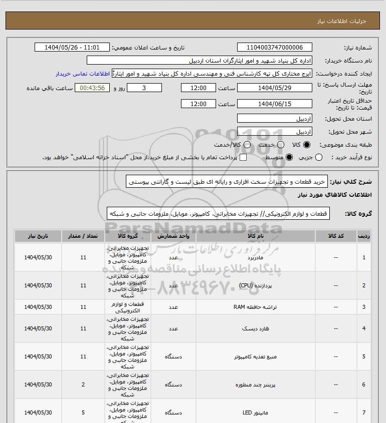 نام دستگاه خریدار:اداره کل بنیاد شهید و امور ایثارگران استان اردبیل