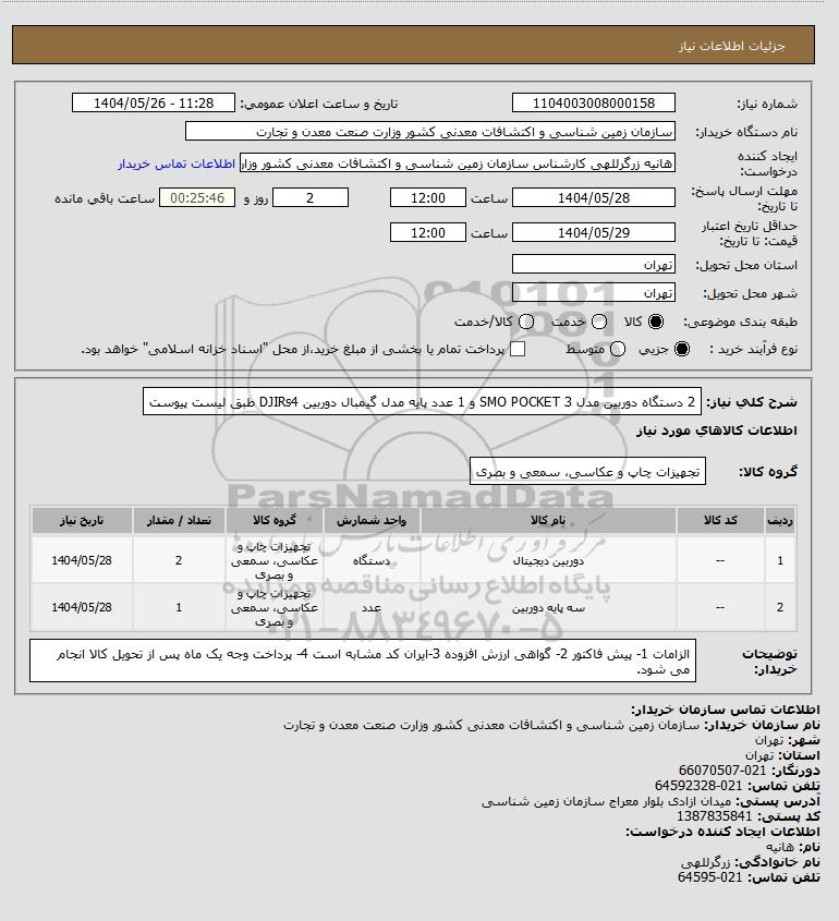 نام دستگاه خریدار:سازمان زمین شناسی و اکتشافات معدنی کشور وزارت صنعت معدن و تجارت