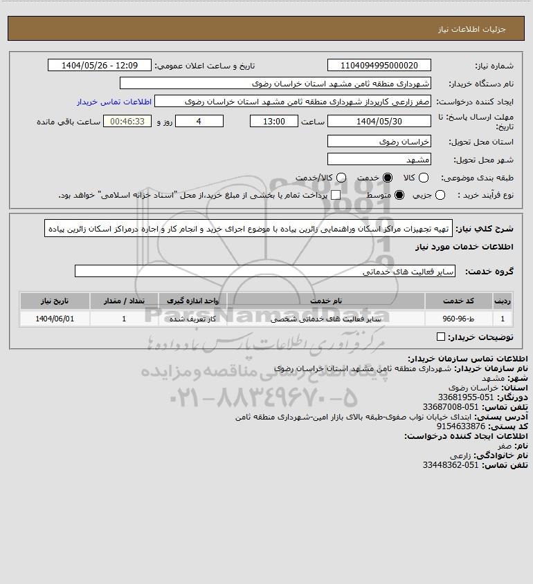 نام سازمان خریدار: شهرداری منطقه ثامن مشهد استان خراسان رضوی
