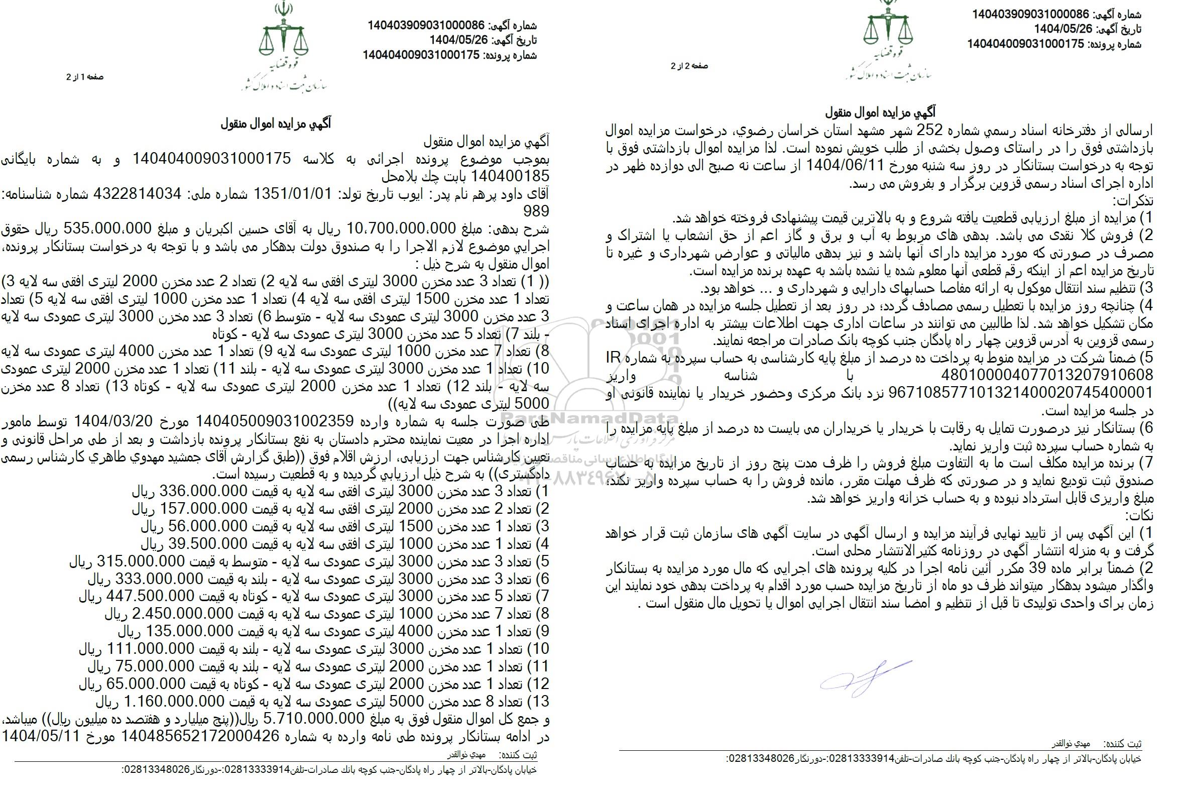 اگهی مزایده اموال منقول