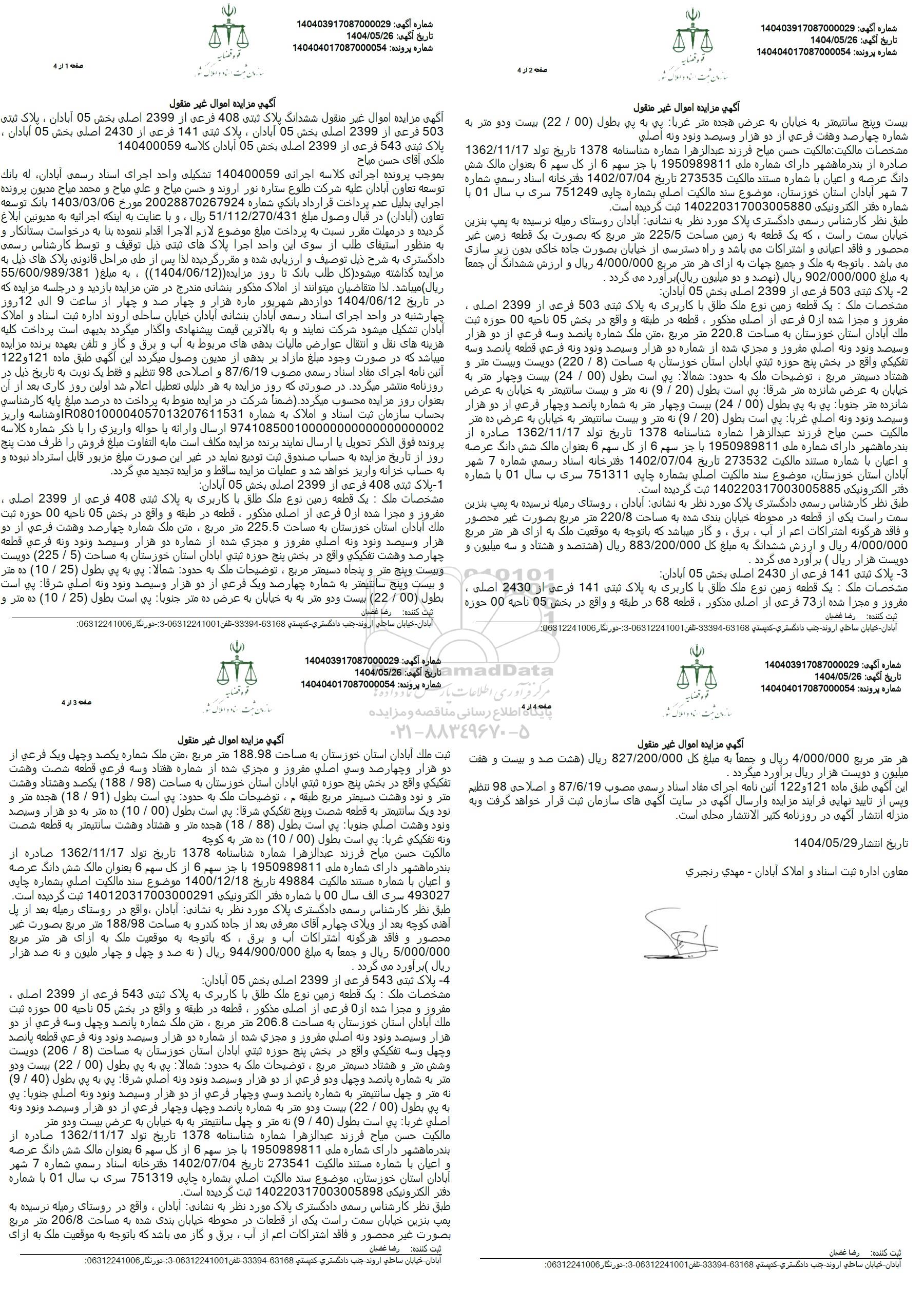 مزایده یک قطعه زمین به مساحت 225.5 مترمربع پلاک ثبتی 408 فرعی از 2399 اصلی