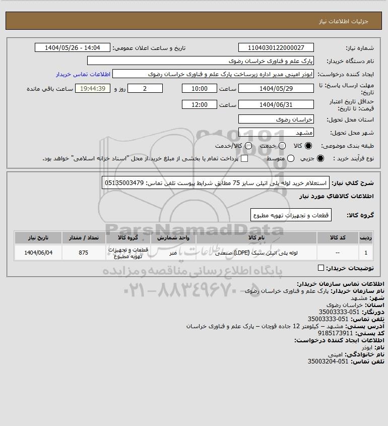 نام دستگاه خریدار:پارک علم و فناوری خراسان رضوی