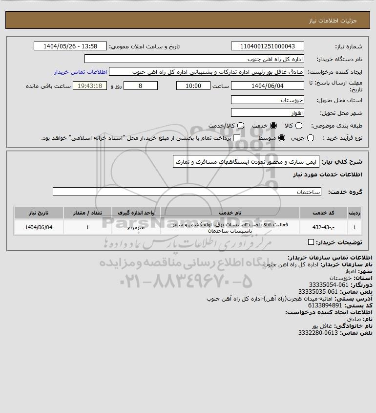 شرح کلی نیاز: ایمن سازی و محصور نمودن ایستگاههای مسافری و نمازی