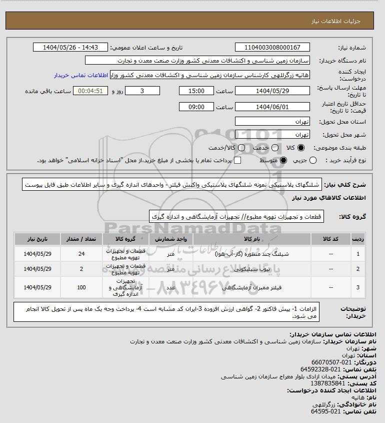 نام دستگاه خریدار:سازمان زمین شناسی و اکتشافات معدنی کشور وزارت صنعت معدن و تجارت