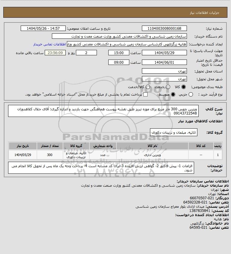 نام دستگاه خریدار:سازمان زمین شناسی و اکتشافات معدنی کشور وزارت صنعت معدن و تجارت