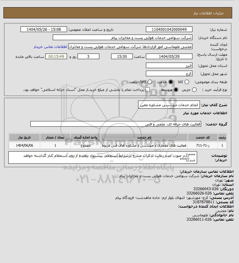 استعلام انجام خدمات مهندسی مشاوره معین, استعلام انجام خدمات مهندسی مشاوره معین