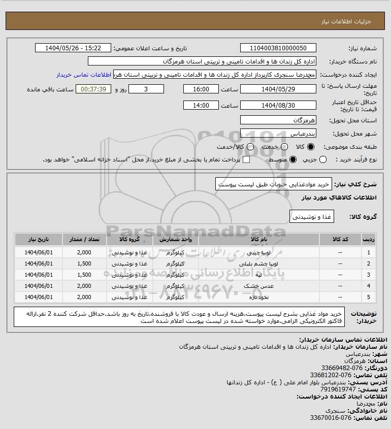 شرح کلی نیاز: خرید موادغذایی حبوبات طبق لیست پیوست
