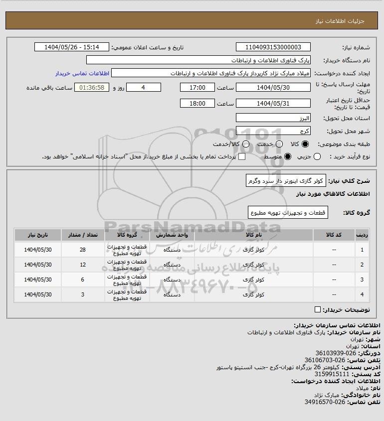 شرح کلی نیاز: کولر گازی اینورتر دار سرد وگرم
