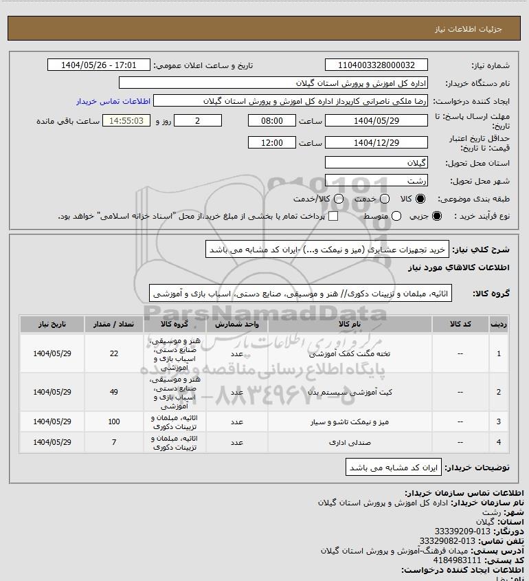 نام دستگاه خریدار:اداره کل اموزش و پرورش استان گیلان