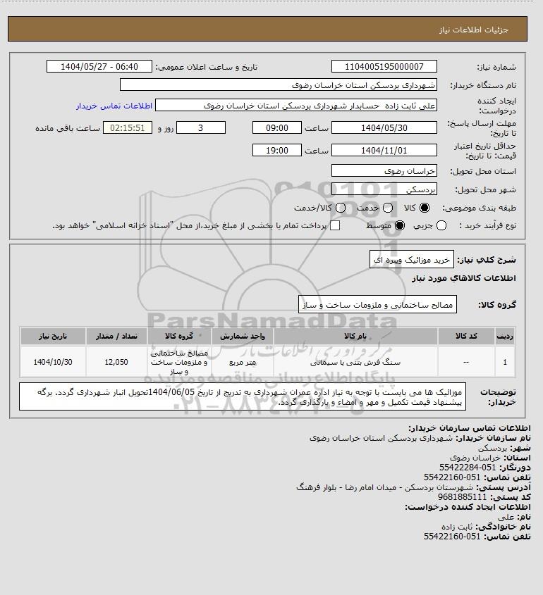 نام سازمان خریدار: شهرداری بردسکن استان خراسان رضوی
