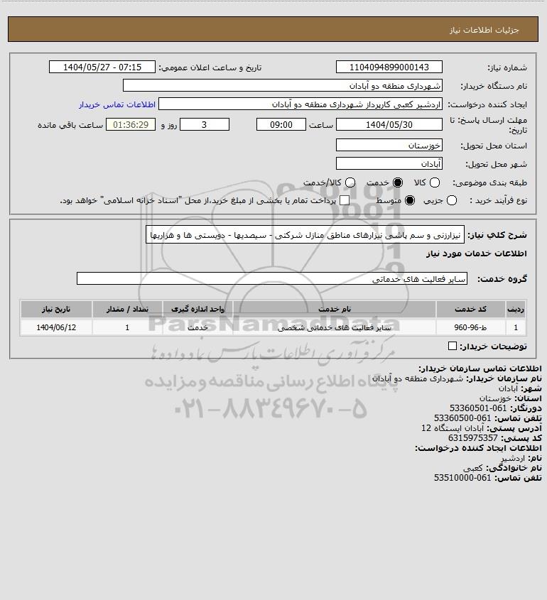 نام دستگاه خریدار:شهرداری منطقه دو آبادان