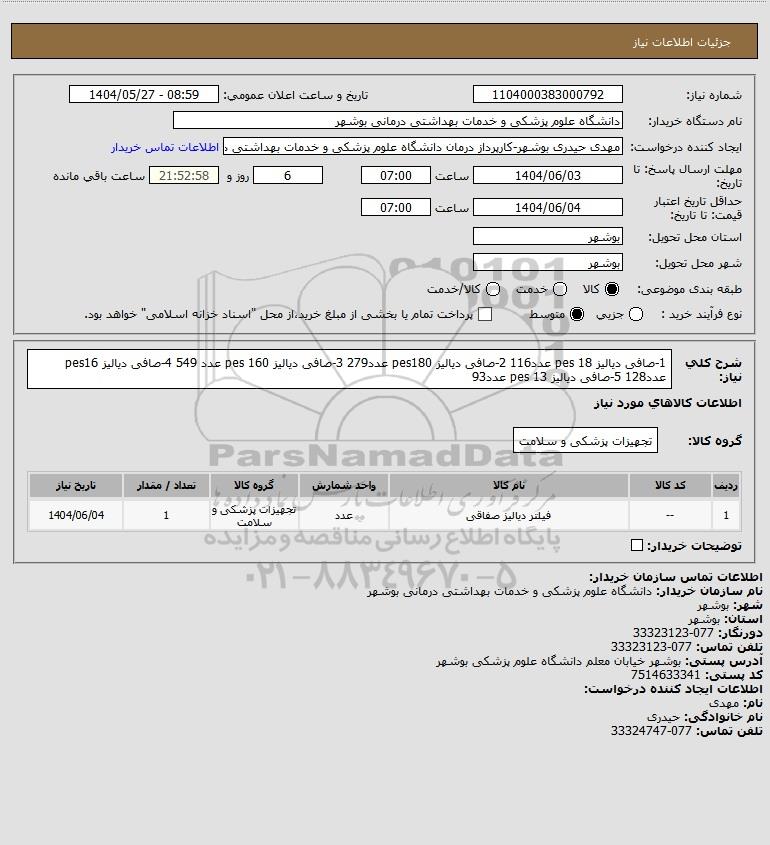 نام دستگاه خریدار:دانشگاه علوم پزشکی و خدمات بهداشتی درمانی بوشهر