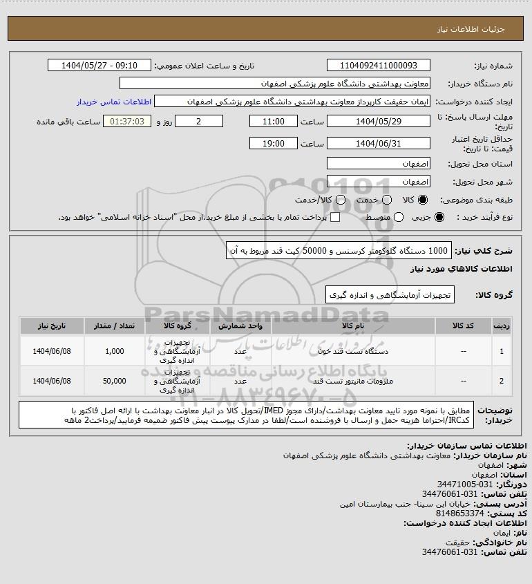 شرح کلی نیاز: 1000 دستگاه گلوکومتر کرسنس و 50000 کیت قند مربوط به آن