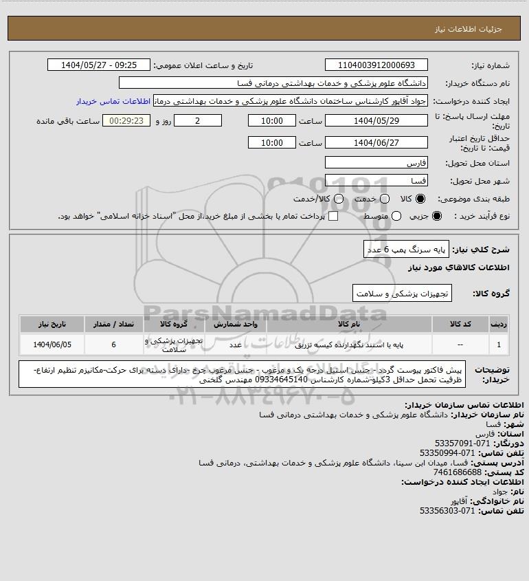 شرح کلی نیاز: پایه سرنگ پمپ 6 عدد