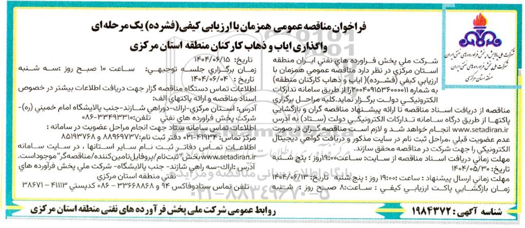 فراخوان مناقصه عمومی همزمان با ارزیابی کیفی (فشرده) یک مرحله ای واگذاری ایاب و ذهاب کارکنان منطقه استان مرکزی