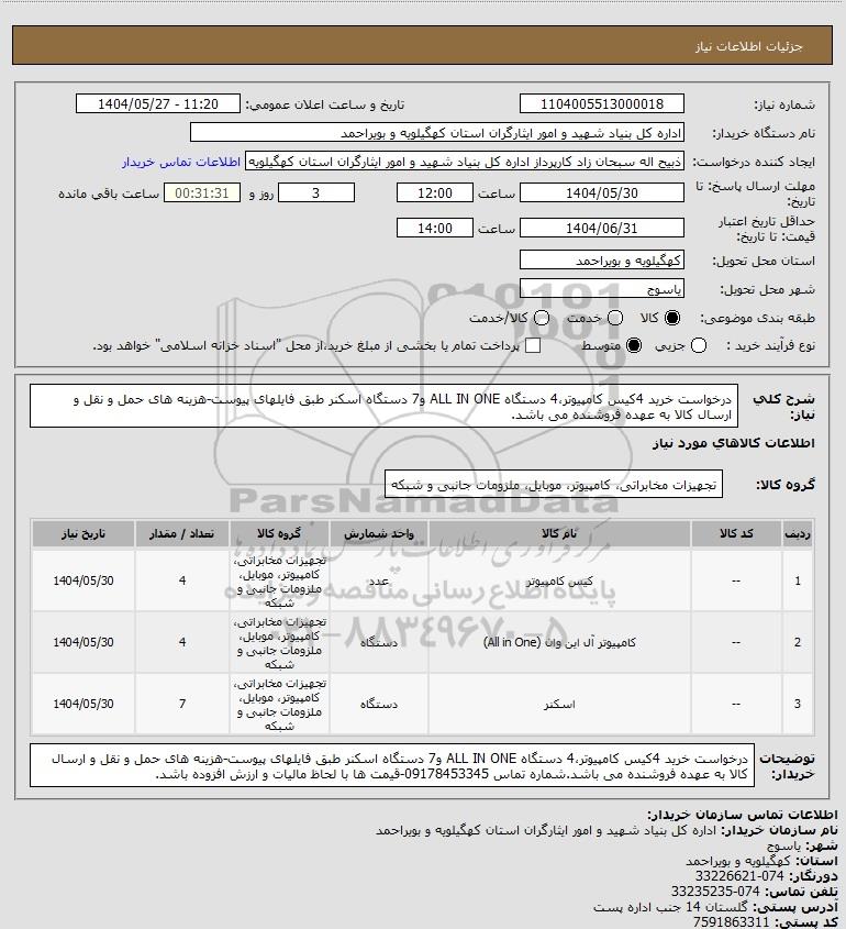 شرح کلی نیاز: درخواست خرید 4کیس کامپیوتر،4 دستگاه ALL IN ONE و7 دستگاه اسکنر طبق فایلهای پیوست-هزینه های حمل و نقل و ارسال کالا به عهده فروشنده می باشد.