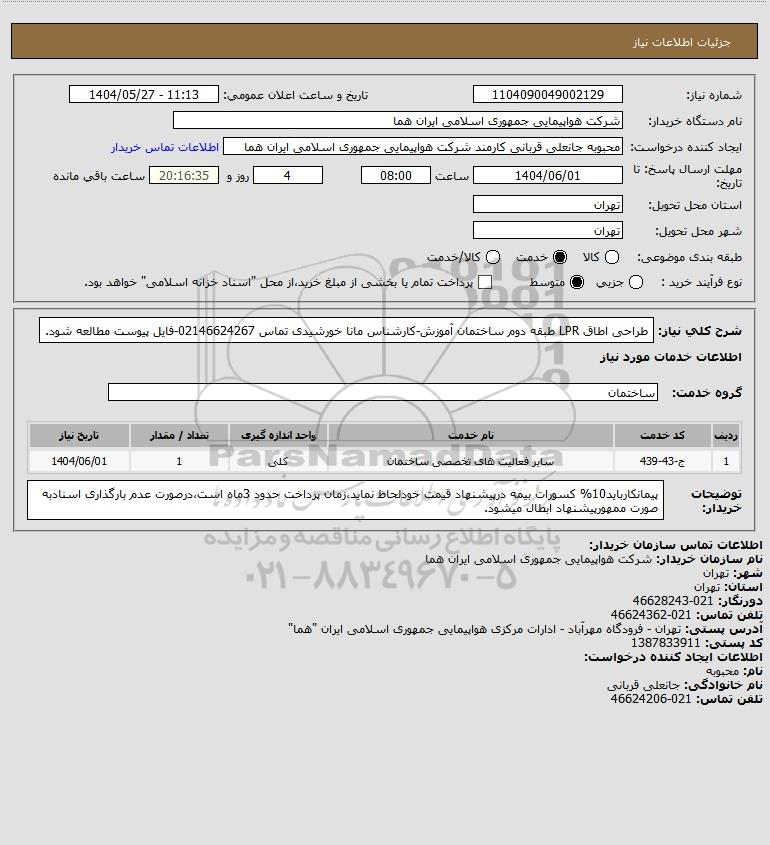 نام دستگاه خریدار:شرکت هواپیمایی جمهوری اسلامی ایران هما