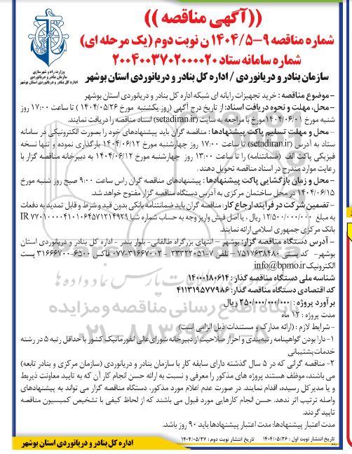 شماره مناقصه  9 - 1404/5 - یک مرحله ای