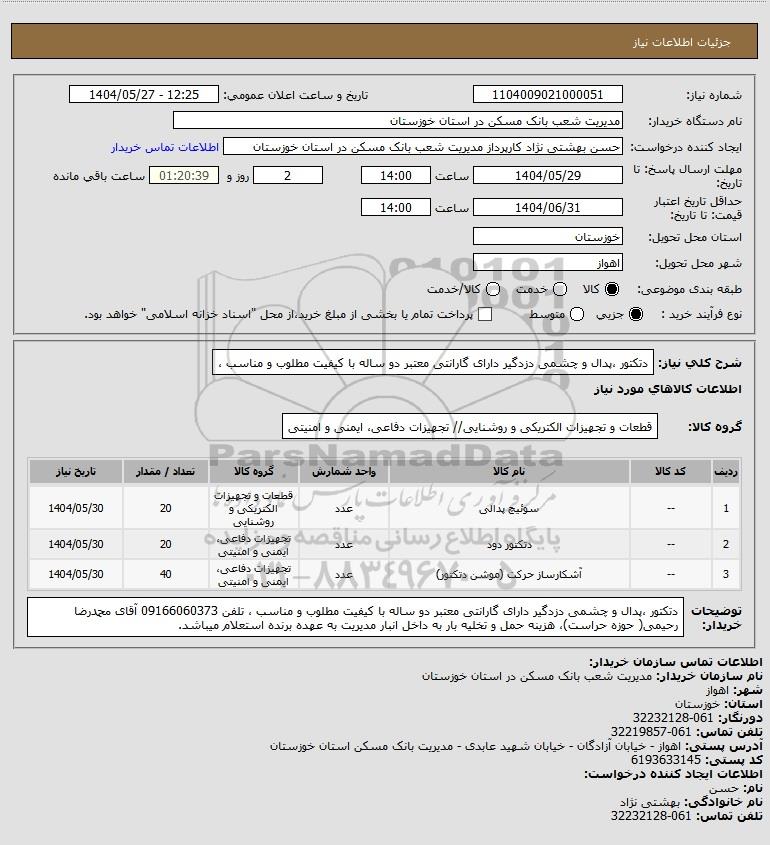 نام دستگاه خریدار:مدیریت شعب بانک مسکن در استان خوزستان