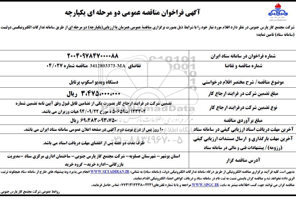 مناقصه دستگاه ویدیو اسکوپ پرتابل, مناقصه دستگاه ویدیو اسکوپ پرتابل