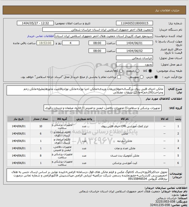 نام دستگاه خریدار:جمعیت هلال احمر جمهوری اسلامی ایران استان خراسان شمالی